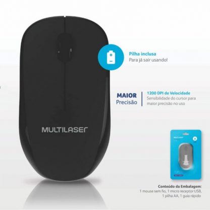 – Conteúdo da Embalagem: 1 Mouse sem fio, 1 Micro receptor USB, 1 Guia rápido, 1 Pilha AA.